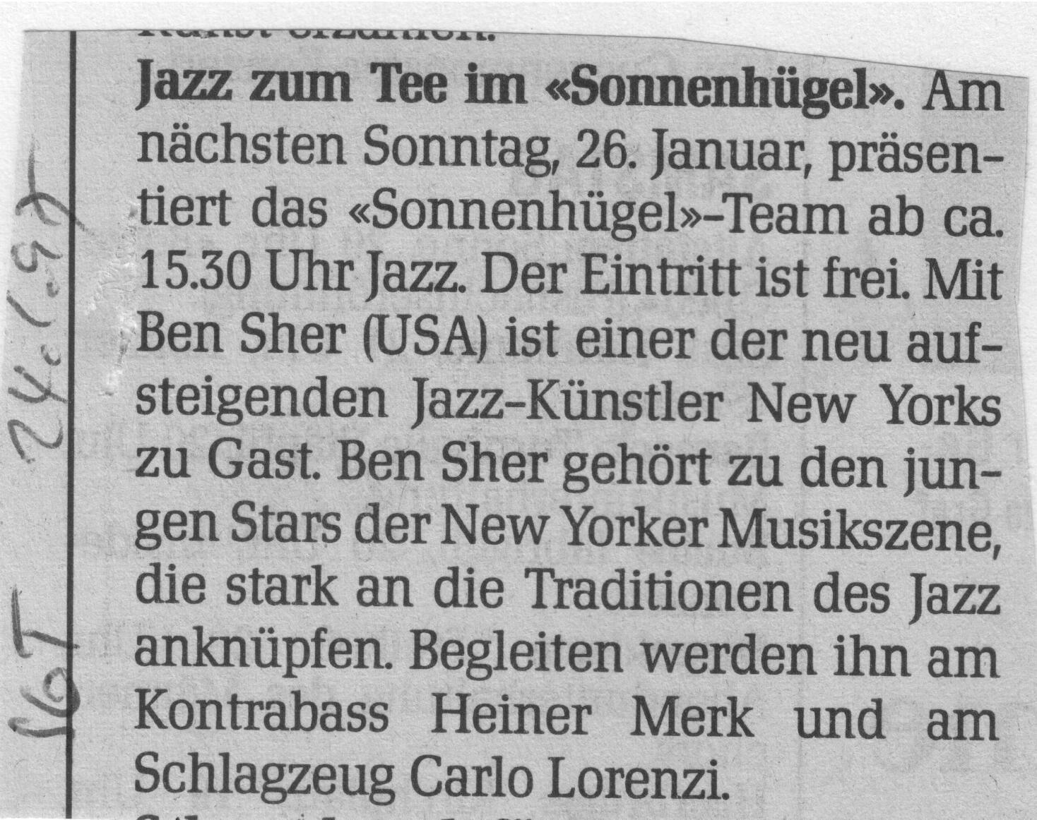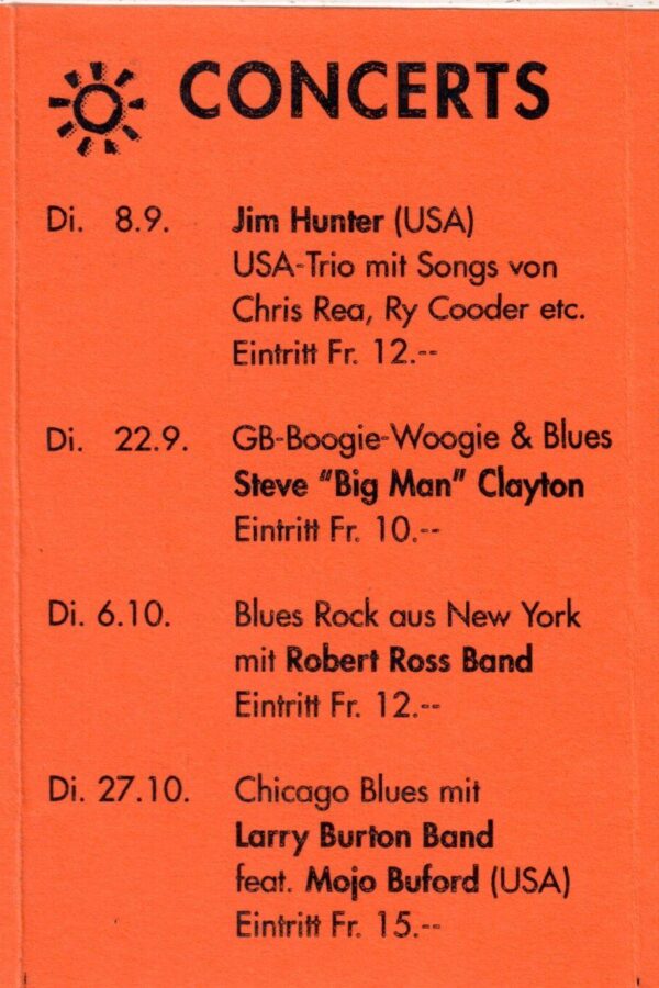 Broccoli Brothers (CH), Ben Sher Trio (USA) Carlo Lorenzi, Heiner Merk, Ossi B. Band,